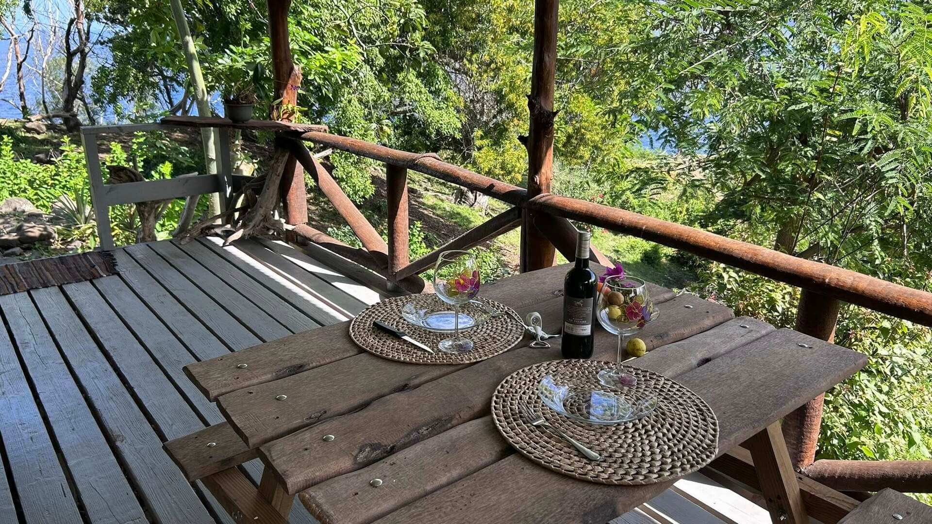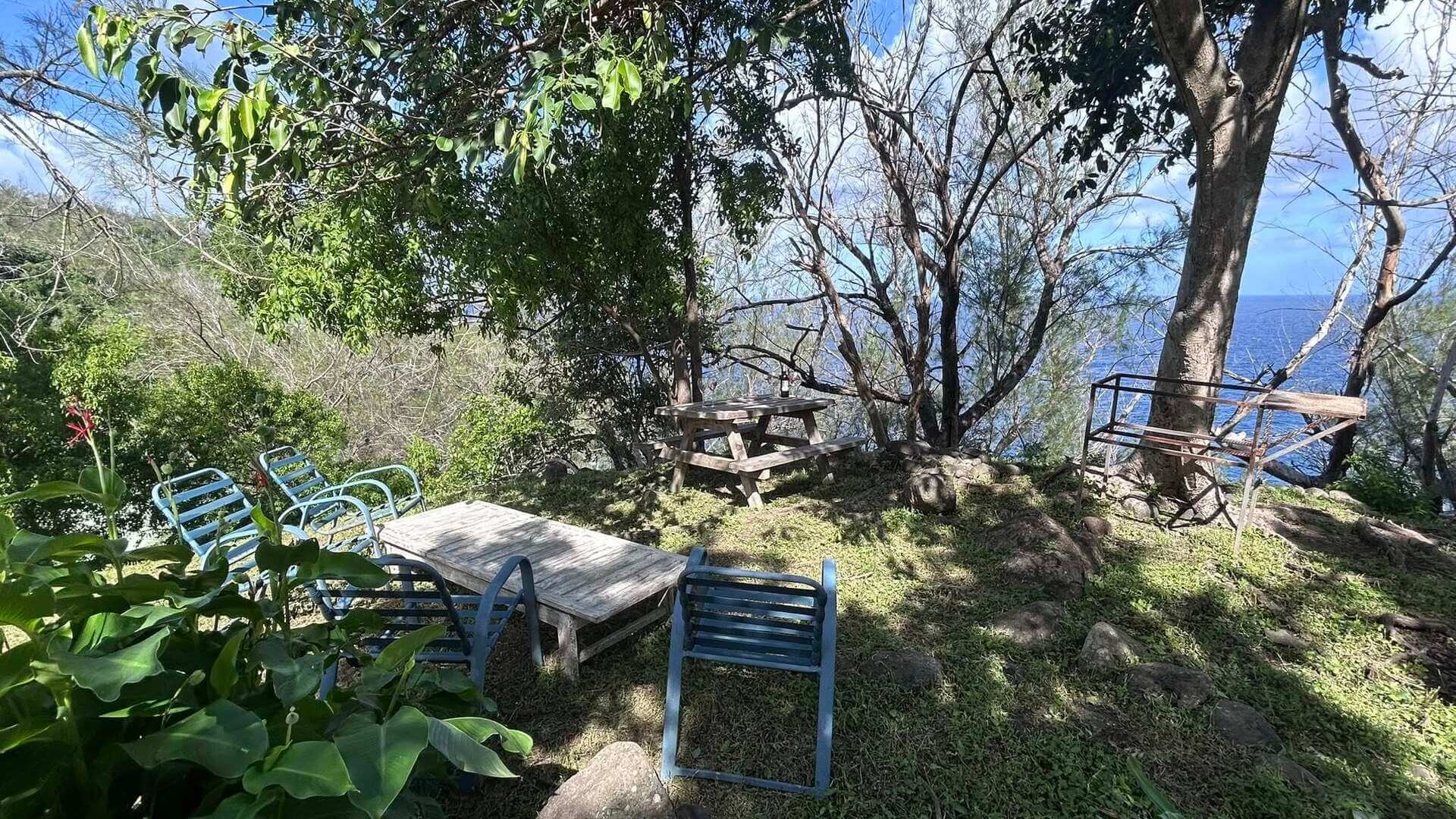 Ici, aucune habitation à proximité immédiate : juste les arbres, les chants d’oiseaux, les reliefs majestueux et, au loin, un aperçu de l’océan qui complète cette atmosphère paisible.